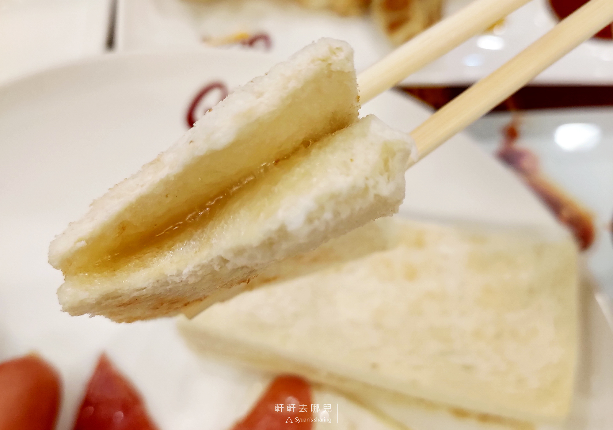蛋餅皮是軟嫩的口感,外皮煎的微脆好吃